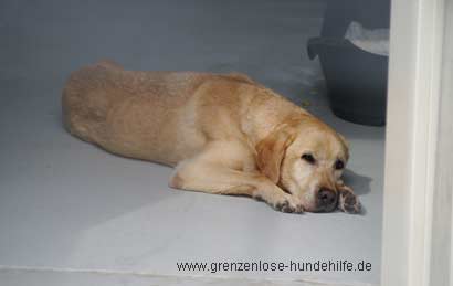 Der helle Labrador Rüde Belouga wurde im Tierheim abgegeben.