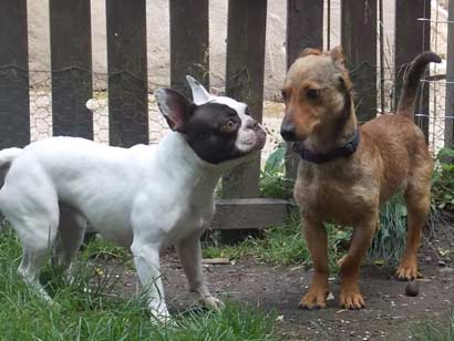 Der braune Rüde heisst Berci und die schwarze Hündin heisst Sandy. Die beiden sind absolute Wonneproppen!