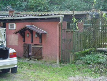 aus seinem Zwinger geholt, so dass er frei auf dem