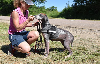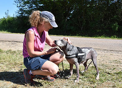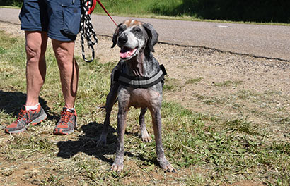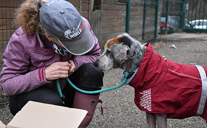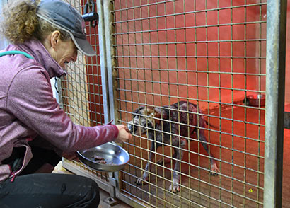 Sie würde eigentlich lieber zurück zum Tierheim, lässt sich aber doch zaghaft weiterlocken.