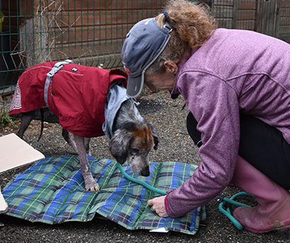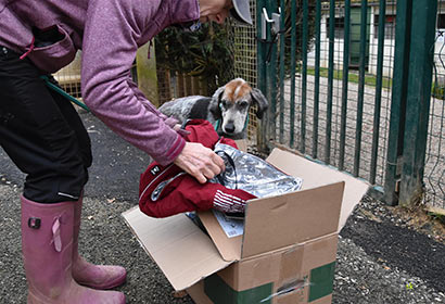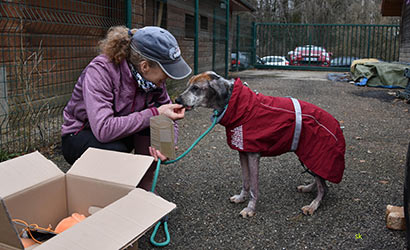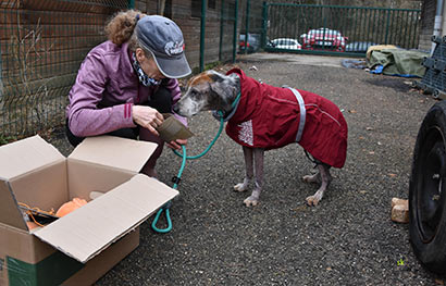 Sie hat einen wunderschönen, warmen Mantel und einige Leckerlis bekommen.