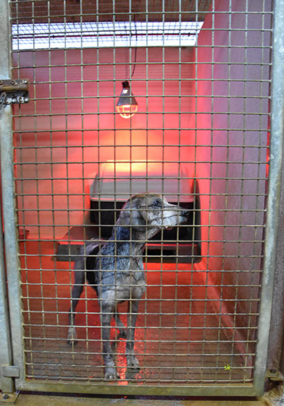 Mein einziger Trost war, dass eine Wärmelampe den Zwinger und ihr Igloo etwas aufwärmte.