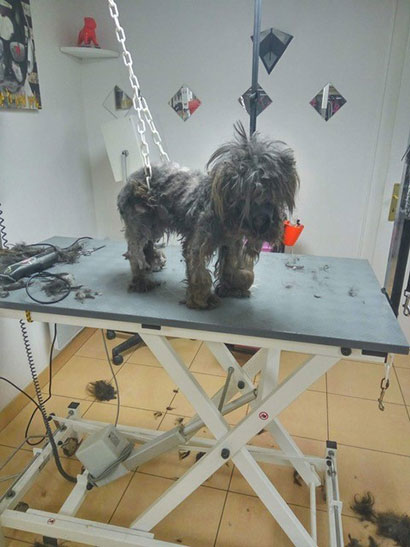 Wir wünschen wirklich keinem Tier, dass sein Weg ins Tierheim führt, aber im Fall von Bibi war es ihr großes Glück. Der Hundefriseur wurde gerufen, die langen Krallen geschnitten und ganze Platten verfilztes und verknotetes Fell wurde entfernt, darunter hervor kam ein bildhübsches Hundemädchen.
