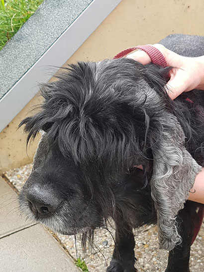Der arme Cocker Rüde Bill wurde in einem entsetzlich verwahrlostem Zustand aufgefunden und ins Spa gebracht.