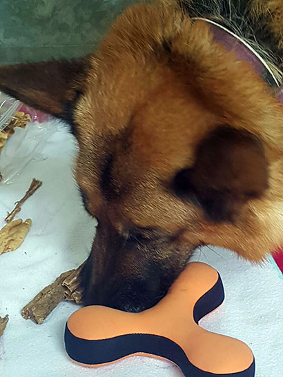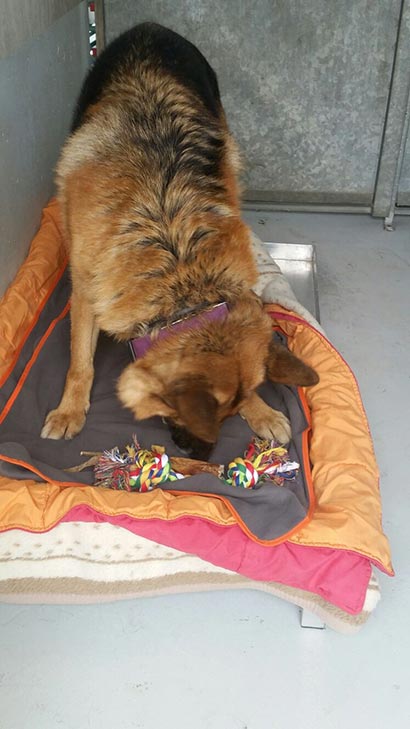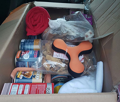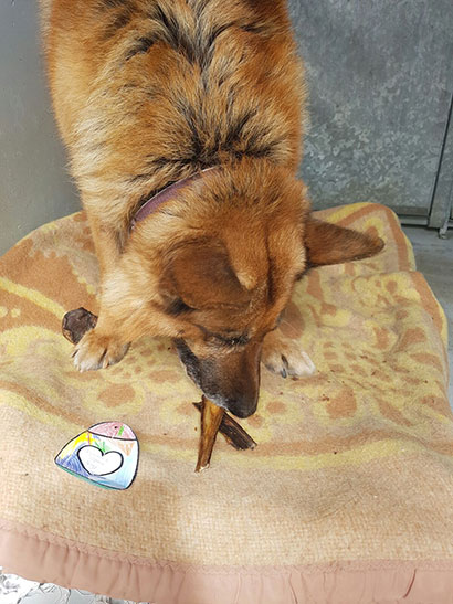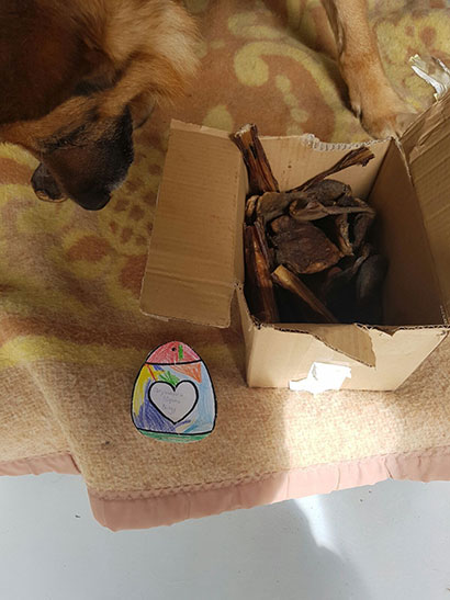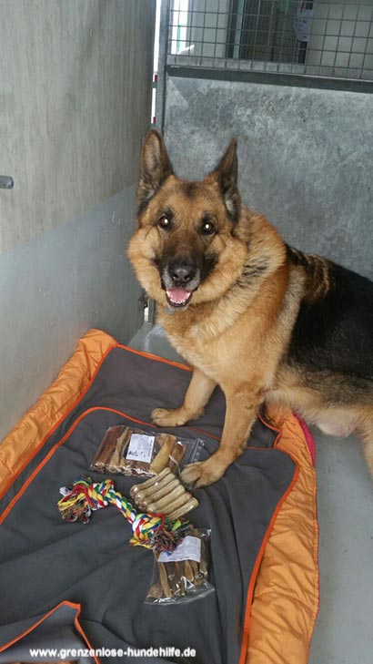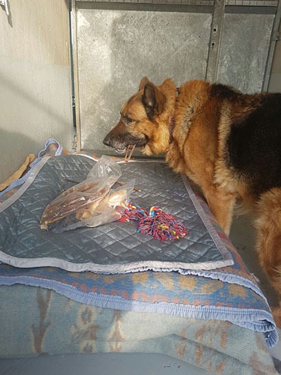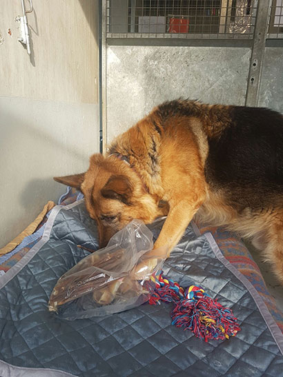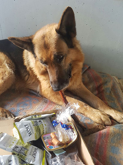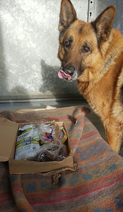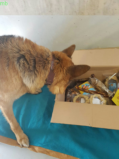 Knabberzeug, Seil und Leckerlis wurden ihm von seiner treuen Gassigängerin Martine überreicht.
