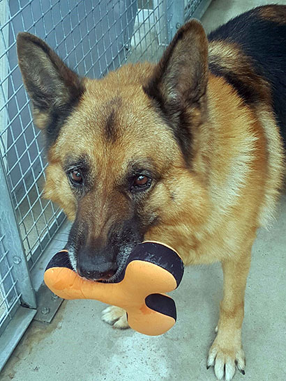 Seine zwei von ihm geduldeten Gassigänger sind sehr bemüht, ihm auch im Tierheim ein gutes Leben zu ermöglichen und kümmern sich rührend um ihn.