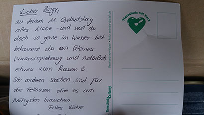 Lieben Dank an Familie Meyer für das liebevoll geschnürte Weihnachtspaket für Bingy (mh)