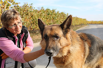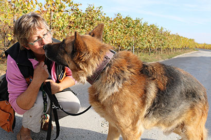 Langsam und gemütlich zieht er mit seiner treuen Gassigängerin heute kleinere Runden.