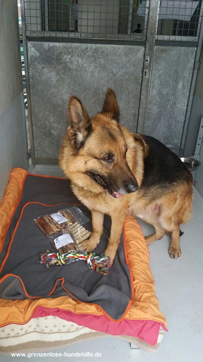 Einige Videos ganz unten zeigen sein Leben im Tierheim.