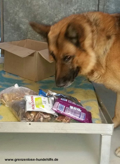 Bingy bedankt sich ganz herzlich bei seiner lieben Patenfamilie fur das ganz tolle Ostergeschenk. Nach einer gründlichen Untersuchung des Paketes hat er sich ein tolles Leckerli ausgesucht und es wurde sofort verschlungen....