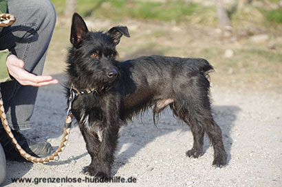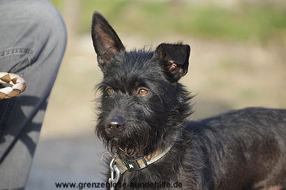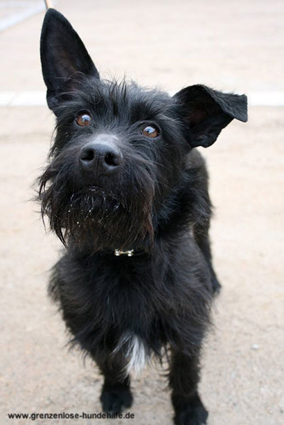 Der süße Blacky ist vermutlich ein Scottish Terrier Mixrüde.