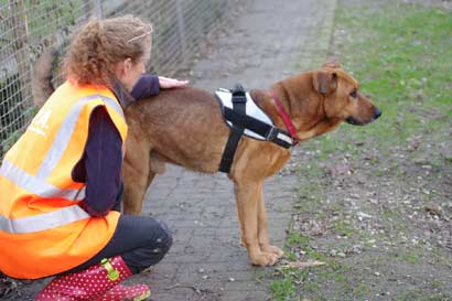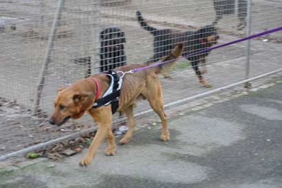 Ich wollte Bobby wenigstens ein wenig Bewegung verschaffen und so lud ich ihn ein mit mir eine Runde zu laufen. Er hat sich sehr gefreut. Ohne Probleme konnte ich Ihm ein Geschirr anziehen und los.. Ich weiß von einigen Gassigängern, dass Sie denken, dass Bobby zu stark an der Leine ziehen könnte(?) und nehmen Ihn deswegen leider, leider nicht raus :((((((