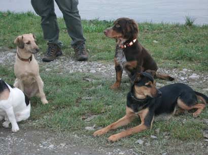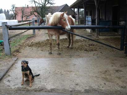 Boby mit seinen Hundefreunden und mit dabei bei den Pferden |