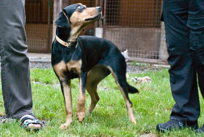 Die ca. 2jährige schwarz-braune Kurzhaar-Hündin wurde gefunden. Wir haben sie Bonnie genannt. Bonnie ist noch schüchtern, aber sehr freundlich.