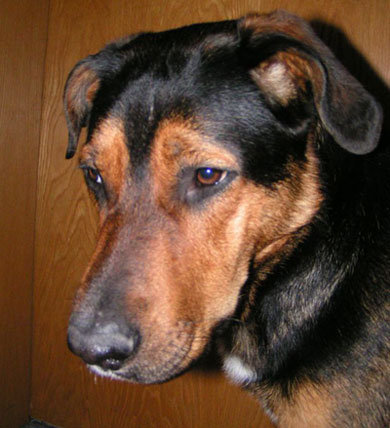 Bonny, eine dreifarbige Berger-Mix-Hündin,