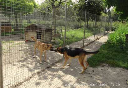 Dort angekommen hat er direkt seinen Freilaufnachbarn begrüßt. Beide Rüden gingen am Zaun freundlich aufeinander zu und sind dann am Zaun hin und her gesprungen und gerannt :)