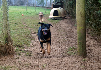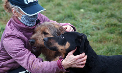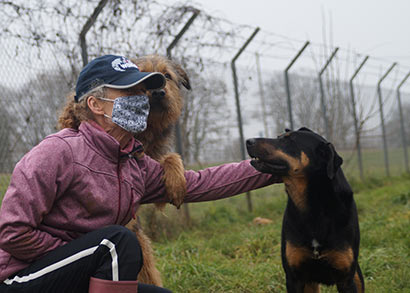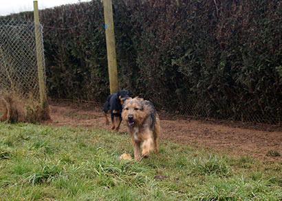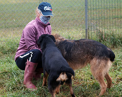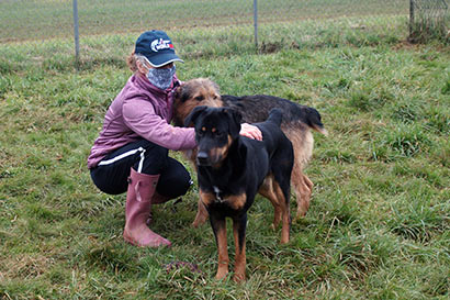 Wir nahmen die Jungs mit zu einem Spaziergang, beide liefen schön an der Leine. Begegnungen mit anderen Hunden verliefen problemlos, die Katzenverträglichkeit muss noch getestet werden.