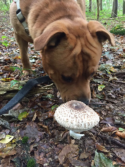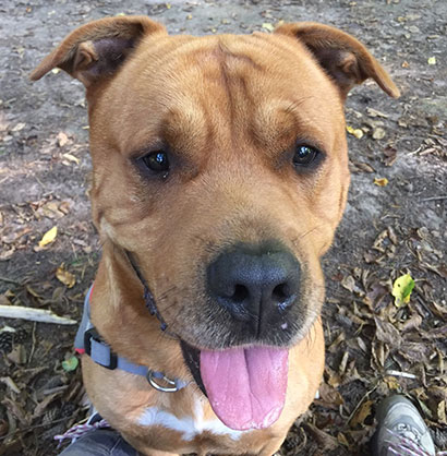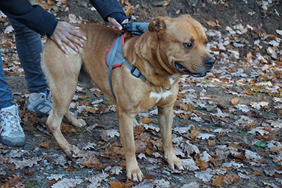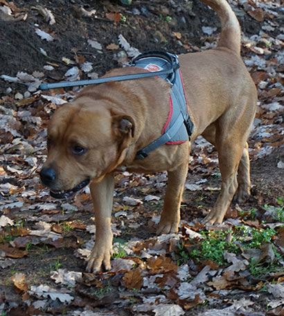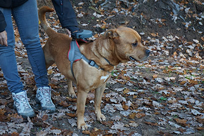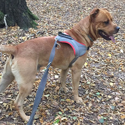 Dabei ist Boomer eine richtige Schmusebacke und läuft ordentlich an der Leine.