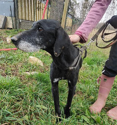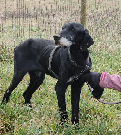 Der arme, 9 Jahre alte Rüde Bosko wurde sehr abgemagert aufgefunden.