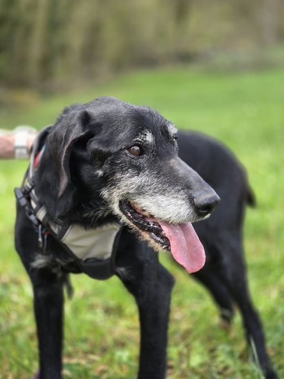 Er ist nach wie vor ein freundlicher und fitter Goldschatz. Bosco braucht jetzt nur noch ein gemütliches Körbchen, streichelnde Hände und eine „für immer Familie“.