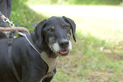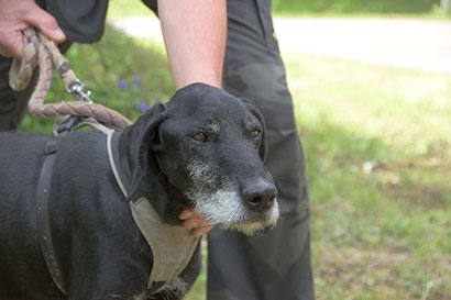 Bosko war sehr gestresst, hat sich immer wieder im Kreis gedreht oder an der Leine gezogen.