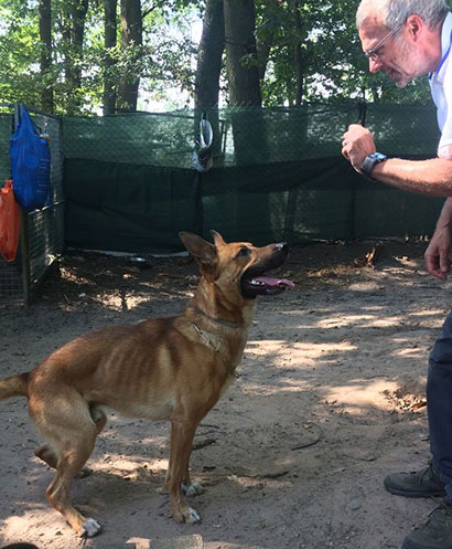Bouba genießt die Zuwendungen der Gassigeher sehr und mag nicht mehr in seinen Zwinger zurück :((