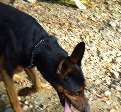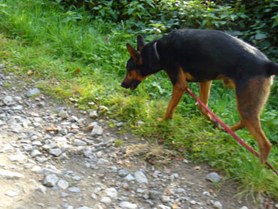 Hund. Er findet Schnüffeln und Rennen klasse. Zwischendurch drückte er sich an mich,