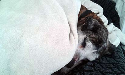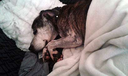 Ihr Blick fiel sofort auf das dünne, zitternde Bündel, dass sich frierend im Körbchen zusammengerollt hatte. Trotz oder gerade wegen des hohen Alters und des schlechten körperlichen Zustandes, durfte Brenda noch am selben Tag mit ihr gehen.
