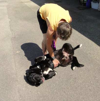 Als ich Buddy anfing ein bisschen zu kraulen, hat er sich sofort vertrauensvoll auf den Rücken gedreht und liess sich ausgiebig den Bauch kraulen :))