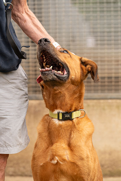 Buldo ist sehr verspielt, sein Lieblings-Spiel heisst «Ich habe den Ball jetzt muss du mich jagen», rennt man ihm hinterher, hat er riesigen Spass und ein Lächeln im Gesicht.