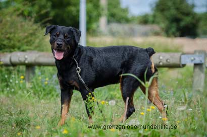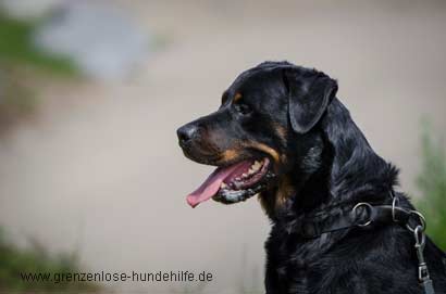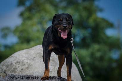 Rottweiler Rüde Caid wurde gefunden und wird auf ca. sieben Jahre geschätzt.