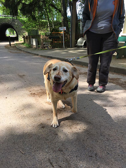 Die 12jährige Labrador Hündin Caline wurde auf Ihre alten Tage ins Tierheim gebracht da ihr Frauchen ins Krankenhaus kam.