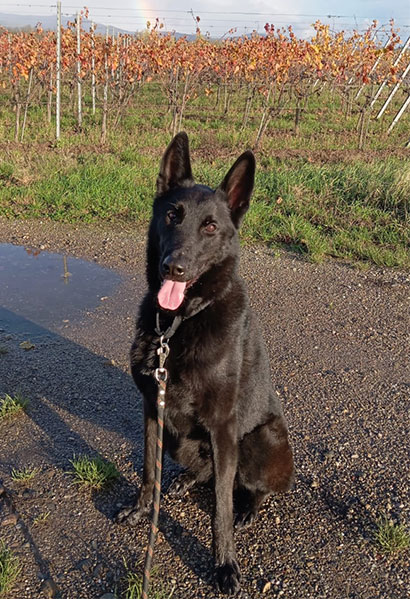 Der wunderschöne liebe Calla wird auf seinen Spaziergängen gerne dazu animiert, Leckerlis zu suchen.