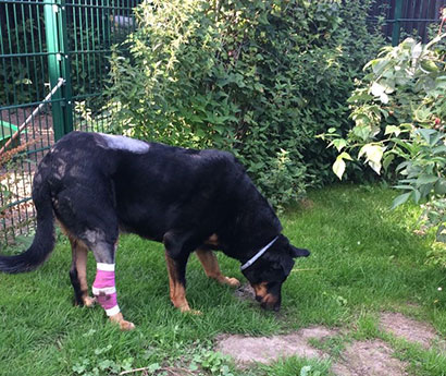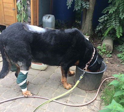 Zudem fand sich eine schlimme offene Wunde am rechten Hinterbein.