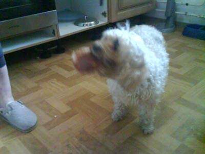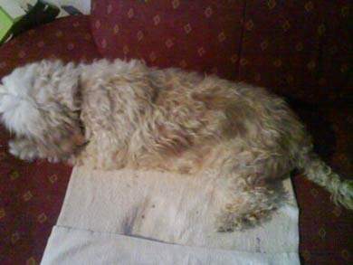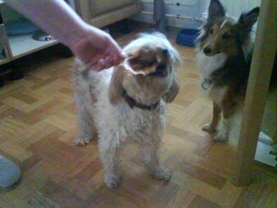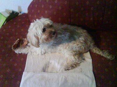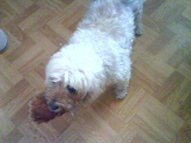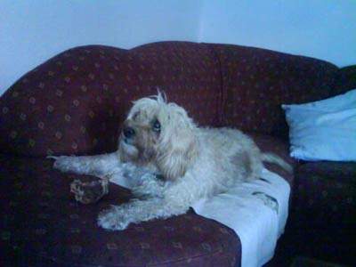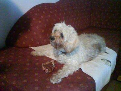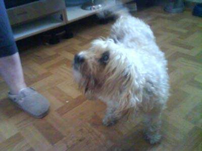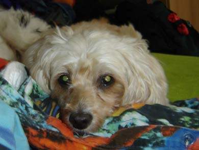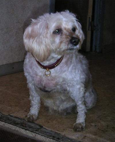 | Canelle, eine 1998 geborene weibliche Pudelmixhündin.