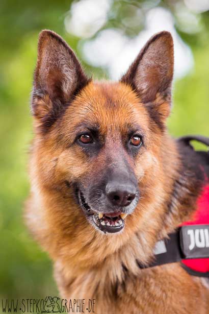 Man kann sie, auch ohne Futter, gut motivieren und sie macht gerne mit. Sie orientiert sich sofort am Menschen und hält auch zu ihr fremden Personen gleich Augenkontakt.