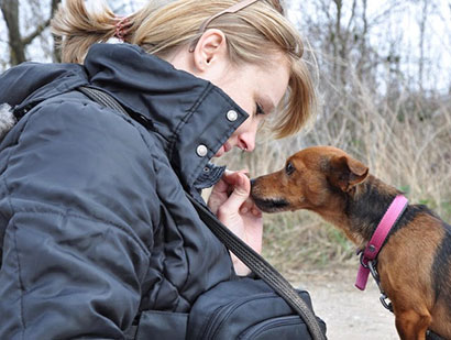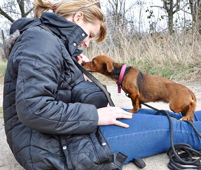 Caramelle ist eine aufgeweckte kleine Hündin, welche für Leckerlies auch schon mal auf den Schoß klettert.