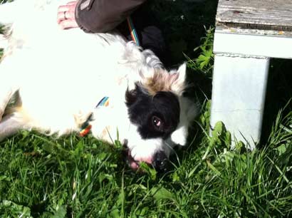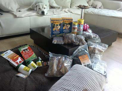 Ein Kong zum Spielen, warme Decken, Leckereien und ein neues Hundebett. Bei Martinas liebevoll selbst gebackenen Hundeplätzchen konnte Carnac nicht nein sagen ;-) Carnac bedankt sich von ganzem Herzen!!! |