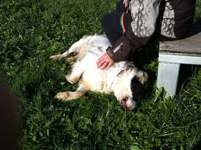Seine vertrauten Menschen wedelte er nur noch schwach an, aufstehen konnte er nur noch mit Hilfe und mußte gestützt werden. Unser lieber Carnac ist müde geworden, sehr müde.