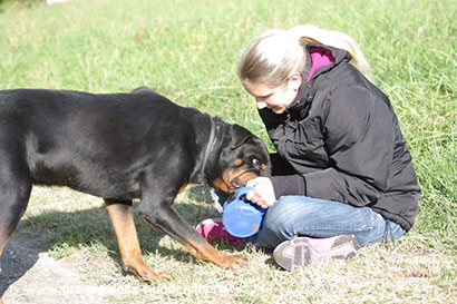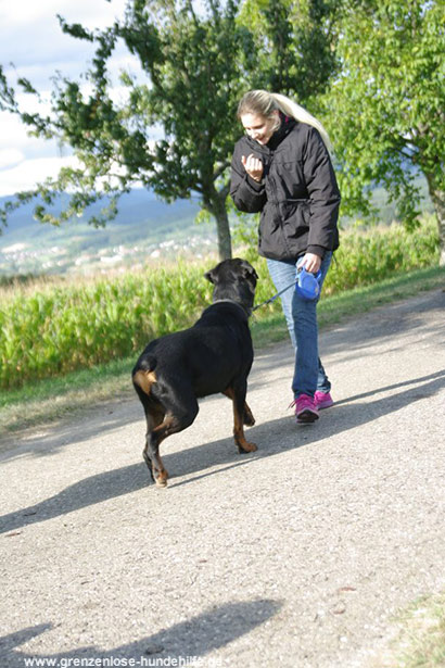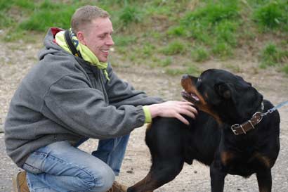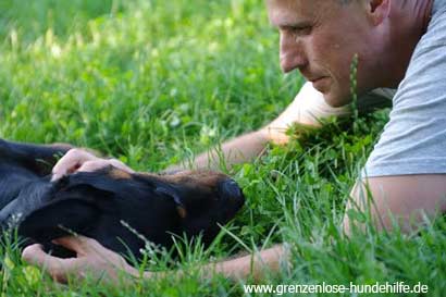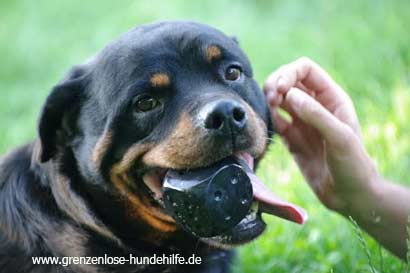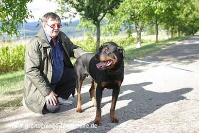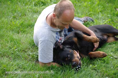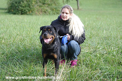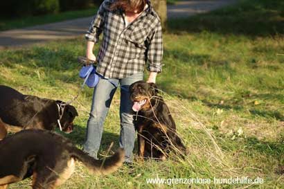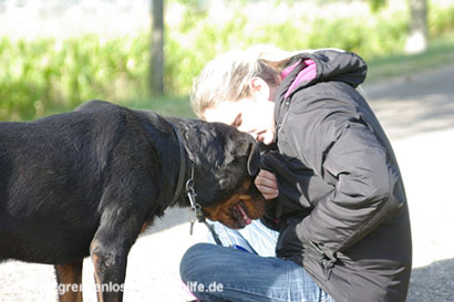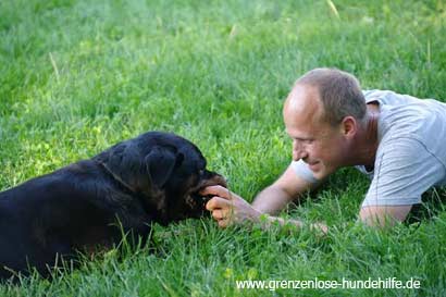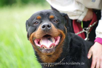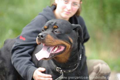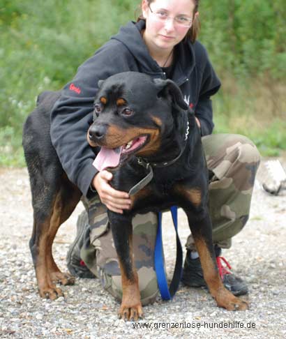 so wie damals der RottweilerKenzo, der von Jugendlichen mißhandelt wurde und keinem Menschen mehr vertrauen wollte. Er hat, dank der Unterbringung in einer Pension mit gezieltem Training, heute ein wunderbares Zuhause gefunden.