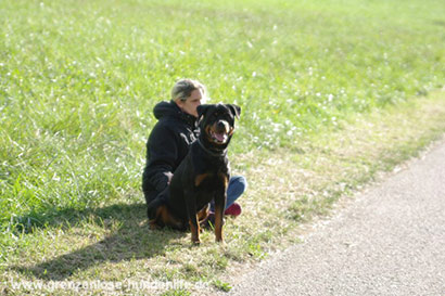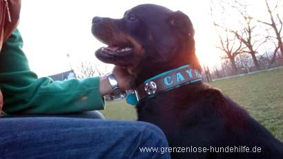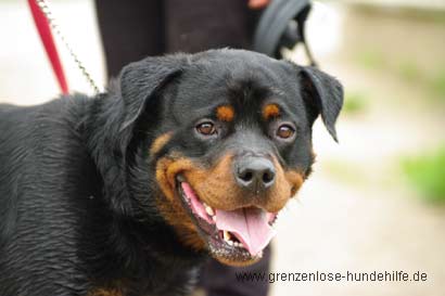 Cayra ist ein liebenswerter Rottibub, der für sein Leben gerne laufen geht. Hat er einmal Vertrauen gefaßt ist er ein schmusebegeisterter Rotti, der immer mit der Nase nach etwas Neuem sucht. Sicher an der Leine geführt, trottet Cayra dankbar und vertrauensvoll neben seinem Gassigänger her,und erkundet dabei neugierig schnüffelnd die Umgebung. Leckerlies werden vorsichtig und mit leuchtenden Augen genommen und prompt mit einem Dankeschön in Form einer Schmuseeinheit quittiert :)).