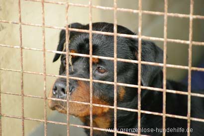 Der hübsche Rottweiler Rüde Cayra wurde in der Aussetzbox gefunden. Geboren wurde er am 28.06.2007
