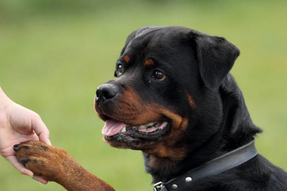Er braucht eine sichere und konsequente Führung und ist dann auch sehr gehorsam. Er kennt die Grundkommandos Sitz, Platz, Bleib.