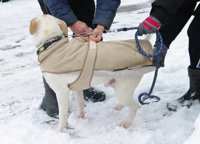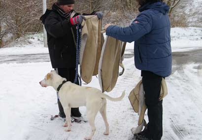 | Lieben Dank an die Mitglieder des Dogo Fonds. Sie haben für Haddock und Cellia gesammelt und Ihnen warme tolle Mäntel geschickt. Diese wurden sofort den Hunden angezogen da SIe mit Ihrem kurzen Fell extrem frieren müssen. |