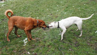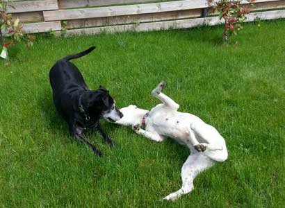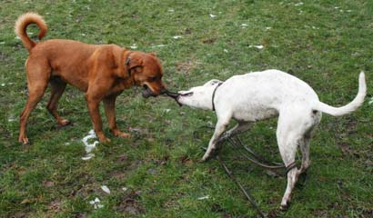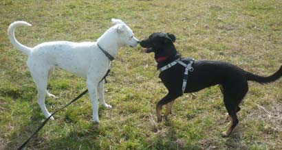 Mit anderen Hunden hat sie kein Problem, besonders mit Cujo versteht sie sich gut ;-).
