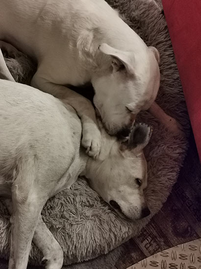 Cujo und Cillia sind wirklich wie Bruder und Schwester. Leider sind die beiden sehr gestresst und freuen sich sehr wenn die Gassigänger kommen!