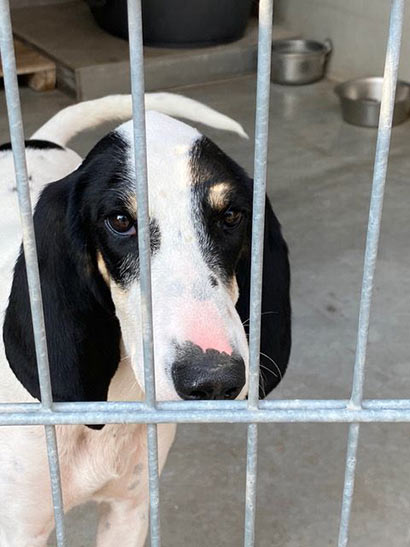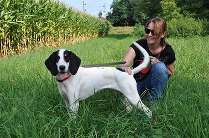 Cerise ist rassetypisch eine anhängliche, menschenbezogene und als Meutehund mit Artgenossen verträgliche Hündin, welche beim Gassigehen ordentlich die Nase auf dem Boden hat.