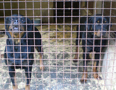 Die beiden Rottis sind beim Spazierenlaufen nicht