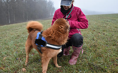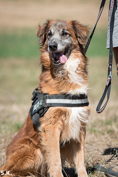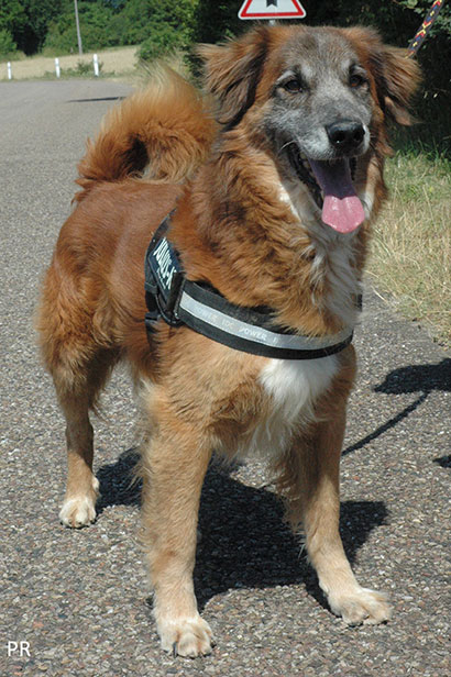Leider hat er eine Luxation der Hüfte, die sich aber mit entsprechendem Aufbautraining und regelmässigen Gassirunden gut auffangen lässt.