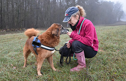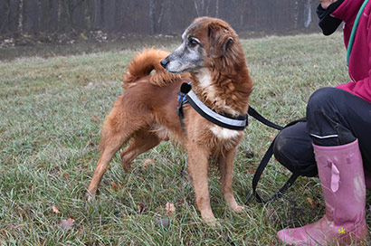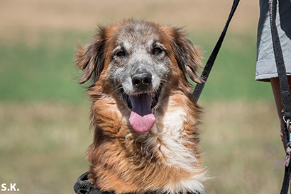 Holt man ihn zum Spaziergang ab, freut er sich riesig, er will dann nur laufen, laufen und noch mal laufen, er ist eben ein super fitter Senior.